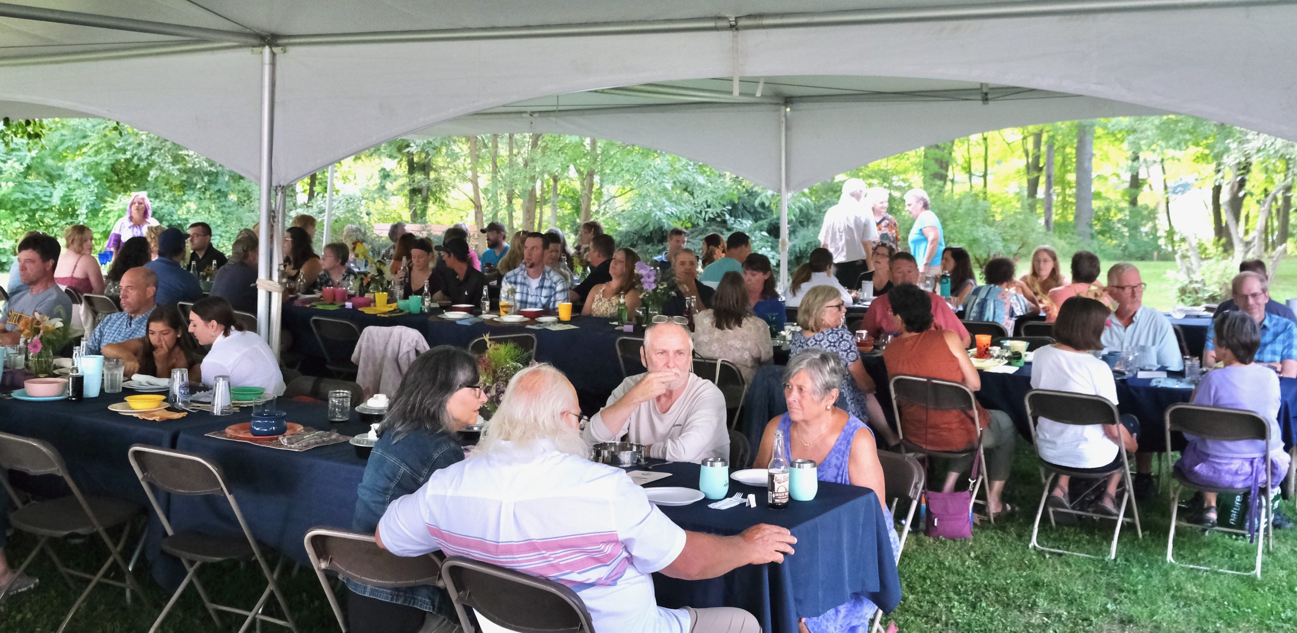 THANK YOU! to everyone who attended, contributed ingredients, entertained us, helped to prepare the meal, serve it, or cleanup afterwards! We thoroughly enjoyed your company and the event. Hope to see you at our 2023 Farm to Table dinner – details will be shared as soon as they are complete. The dinner was held at Nature’s Outlet Park.